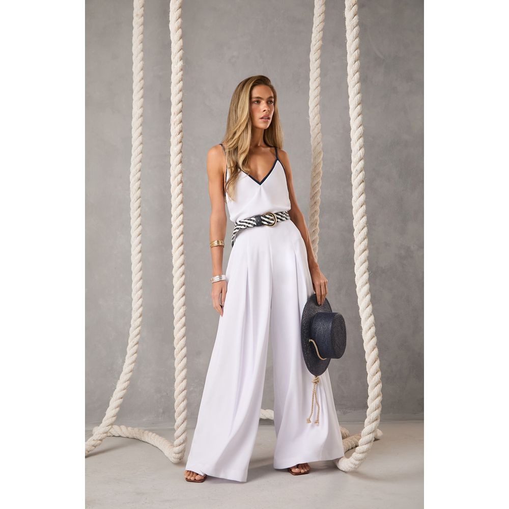 A Calça Carmen é sinônimo de elegância e movimento! Confeccionada em crepe na cor off white, ela apresenta uma modelagem ampla e fluida que proporciona caimento leve e sofisticado. O design conta com recortes frontais que criam um efeito de fenda suave, adicionando modernidade e charme à peça. Com cintura alta e fechamento discreto, valoriza a silhueta e garante conforto com um toque refinado. Ideal para composições elegantes que transitam do dia à noite com estilo e naturalidade.