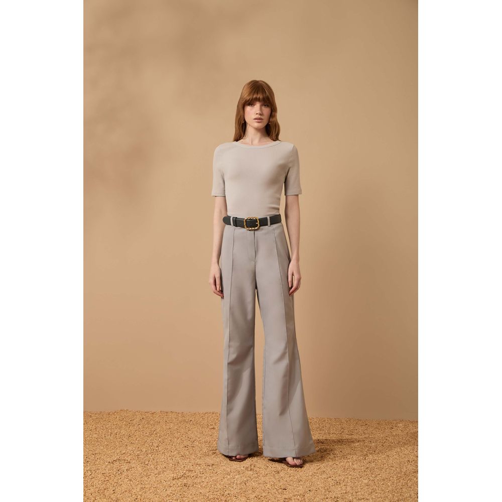 A Calça Eugênia traduz sofisticação e atitude em uma única peça. Produzida em alfaiataria encorpada, possui modelagem flare que alonga a silhueta e confere elegância imediata. O cós alto e as pregas frontais estruturam o visual, enquanto o recorte central alongado traz um toque contemporâneo. Na cor Azul Canastra, oferece um tom sóbrio e elegante, ideal para produções clássicas ou modernas, combinando perfeitamente com camisas, blazers ou tops ajustados para ocasiões que exigem presença.