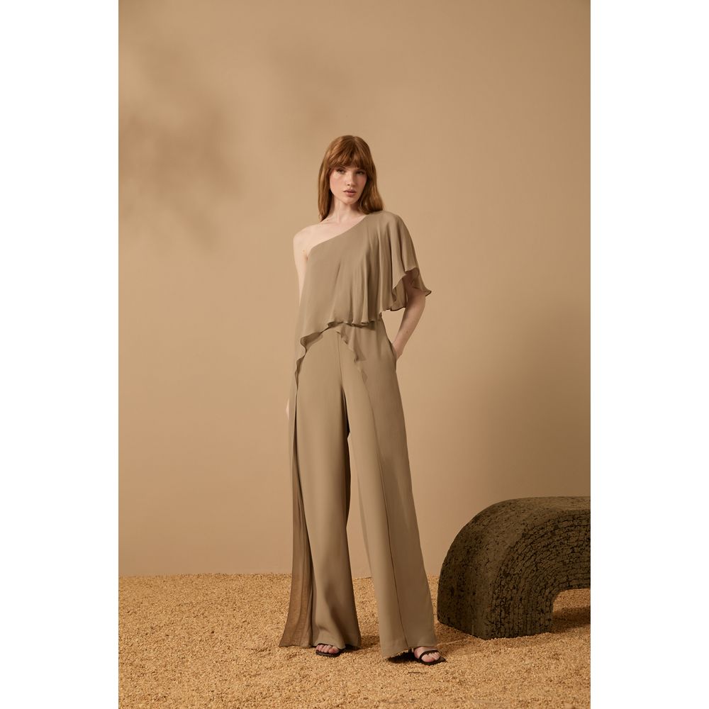 O Macacão Melina é a escolha perfeita para um look sofisticado e cheio de personalidade. Confeccionado em crepe de alfaiataria, ele apresenta modelagem ampla e fluida, que proporciona conforto e movimento. Seu design assimétrico com uma manga única adiciona um toque moderno e elegante, enquanto a calça de pernas largas garante um visual imponente e alongado. Na cor cinza maria fumaça, é versátil e ideal para composições que transitam do dia para a noite com estilo.