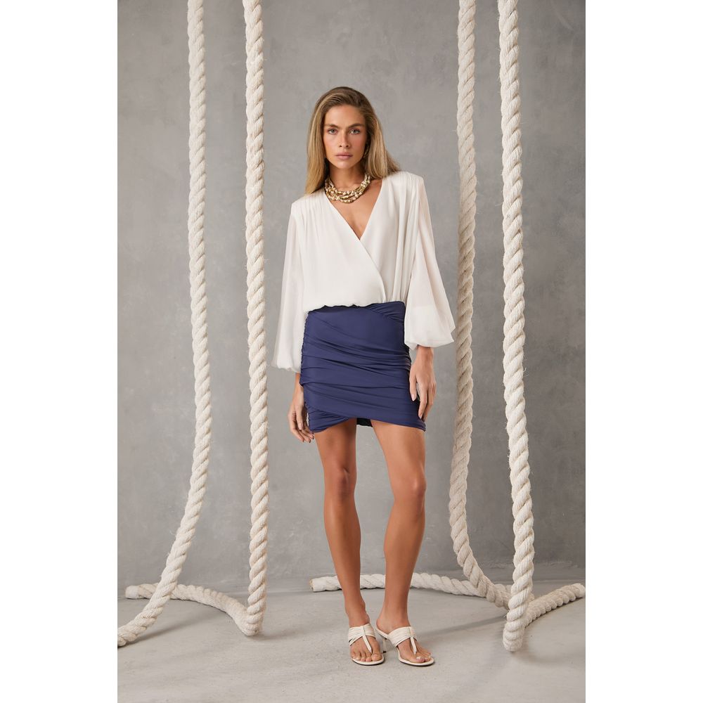 A Saia mini Vivian é sinônimo de estilo e versatilidade! Confeccionada em Jersey begônia e confortável, ela apresenta uma modelagem justa e drapeada, que valoriza as curvas e garante um visual moderno e feminino. O caimento ajustado ao corpo destaca a silhueta, enquanto o comprimento mini adiciona um toque de ousadia ao look. Ideal para combinar com blusas sofisticadas ou croppeds, a Saia Mini Vivian na cor Navy Blue é perfeita para composições elegantes e contemporâneas.