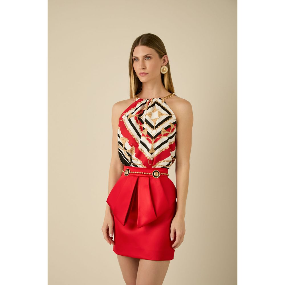 Confeccionada em tecido acetinado, ela apresenta modelagem reta com detalhe peplum estruturado na parte frontal, criando volume e movimento de forma elegante. A cintura alta valoriza a silhueta e traz um toque fashionista à produção. A tonalidade vibrante Bright Red adiciona energia e destaque, tornando a peça ideal para eventos e ocasiões especiais. Combine com o Top Zaya para um conjunto marcante e cheio de estilo.